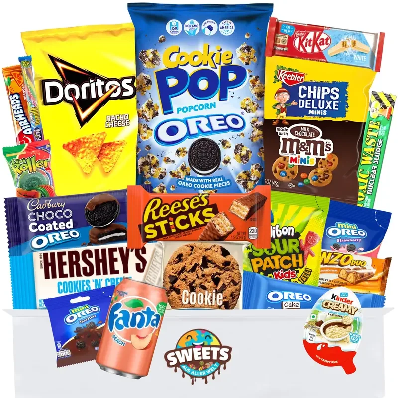 Diese Amerikanische S¨¹?igkeiten Box XL ist der absolute Traum f¨¹r jeden Snack-Liebhaber ¨C totaler Genuss pur!